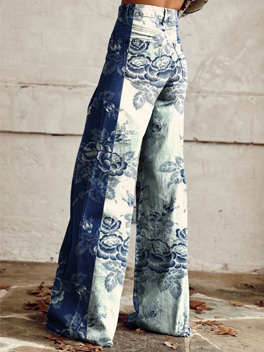 Pantalones Anchos Casual de Estampado Vintage para Mujeres